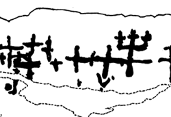 degrees. Engravings: 15 joined crosses, 9 single crosses, 3 crosses like a "candelabro", 1 cross with "foot", 12 cup-marks, 3 channels, 1 modern writing, mine-hole.